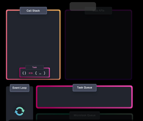 主要是四个概念组成,调用栈,Web APIs,任务队列,微任务队列。